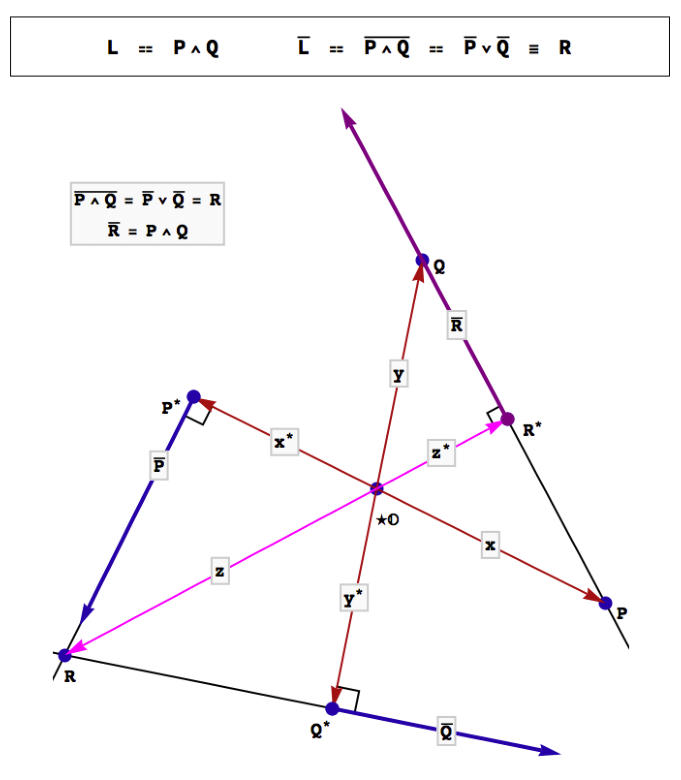 point. The complements of two points P and Q yield two planes which intersect in a line R whose